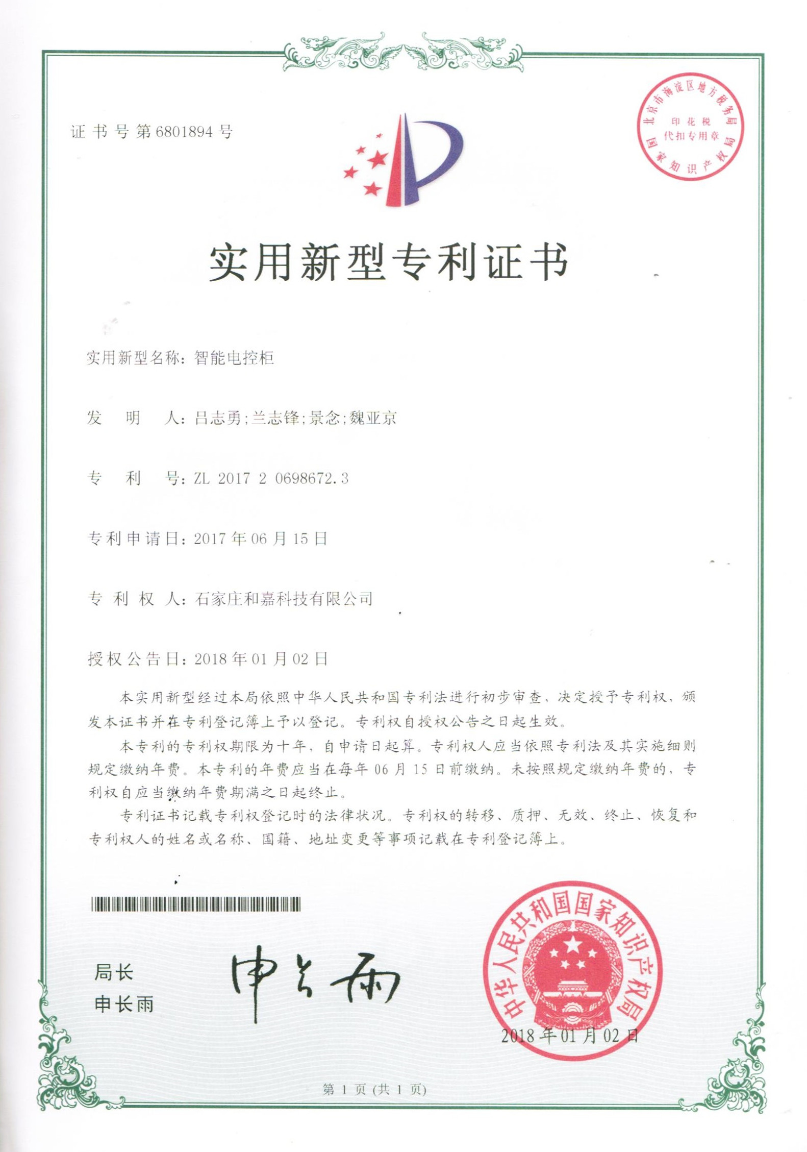 實(shí)用新型專利證書—一種高速公路智能綜合電控柜