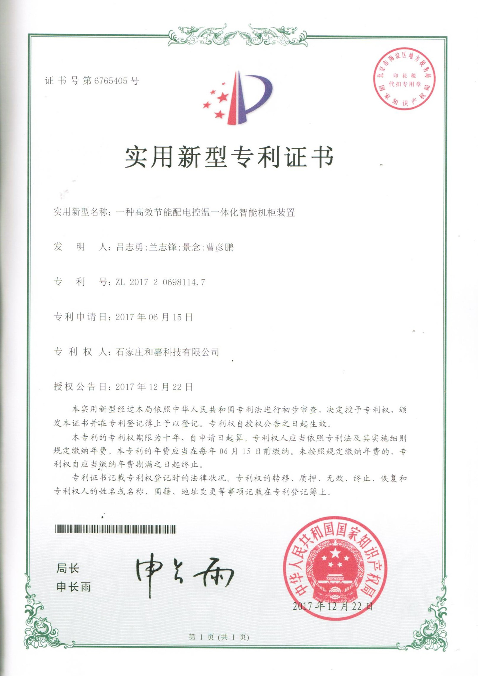 實(shí)用新型專利證書-一體化智能機(jī)柜