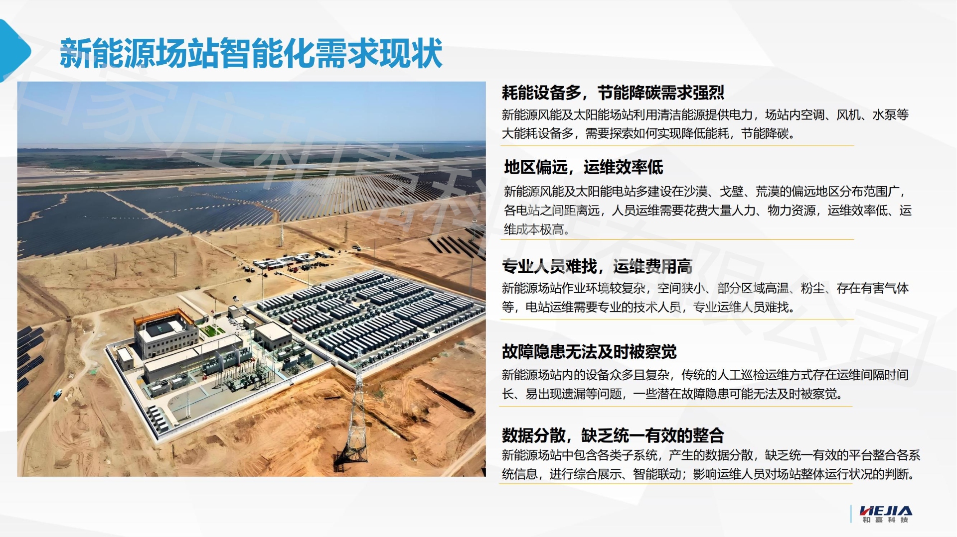 在“雙碳”目標推動下,新能源場站規(guī)??焖贁U張,但偏遠選址、設備復雜、運維成本高等痛點制約行業(yè)發(fā)展。和嘉科技推出的新能源場站智能輔控系統(tǒng),以“智能感知+智能控制”為核心,通過數(shù)字化手段實現(xiàn)場站全場景智能化管理,成為行業(yè)降本增效的利器。