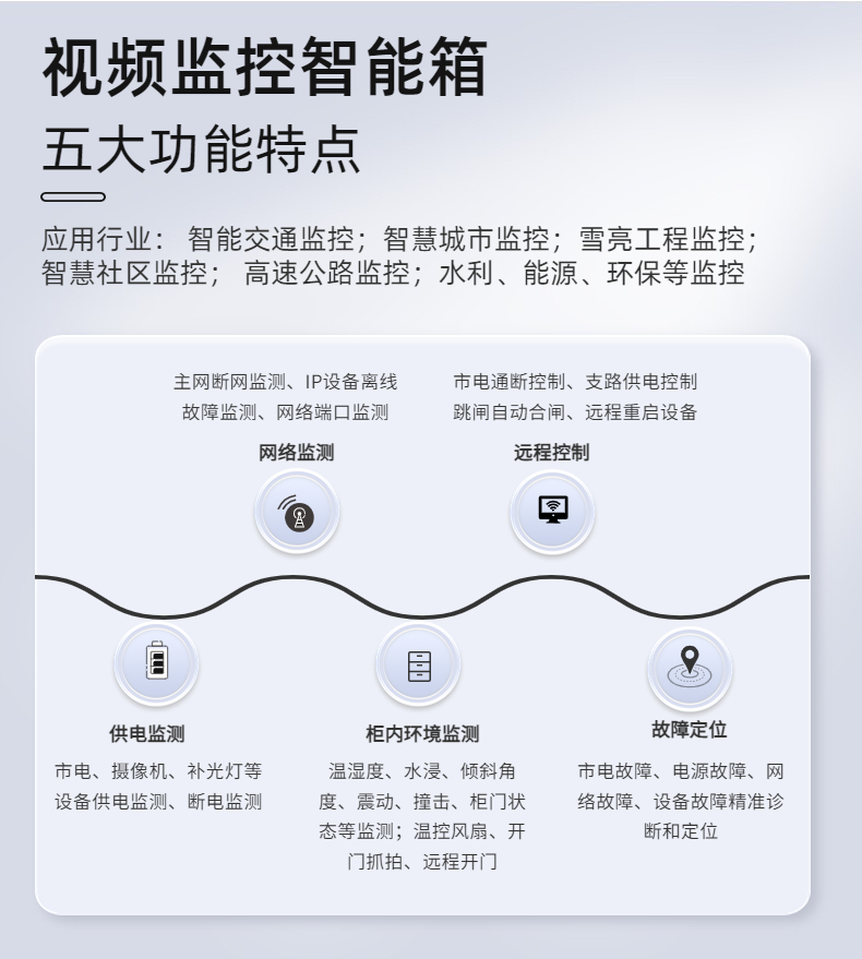 隨著各行各業視頻監控建設不斷增加,視頻監控智能箱是專門針對視頻監控點位的前端設備如補光燈、攝像頭、雷達等保證其在線率實現有效的智能化管理。