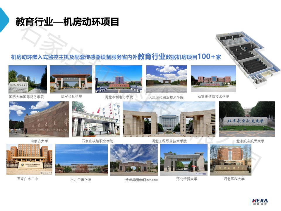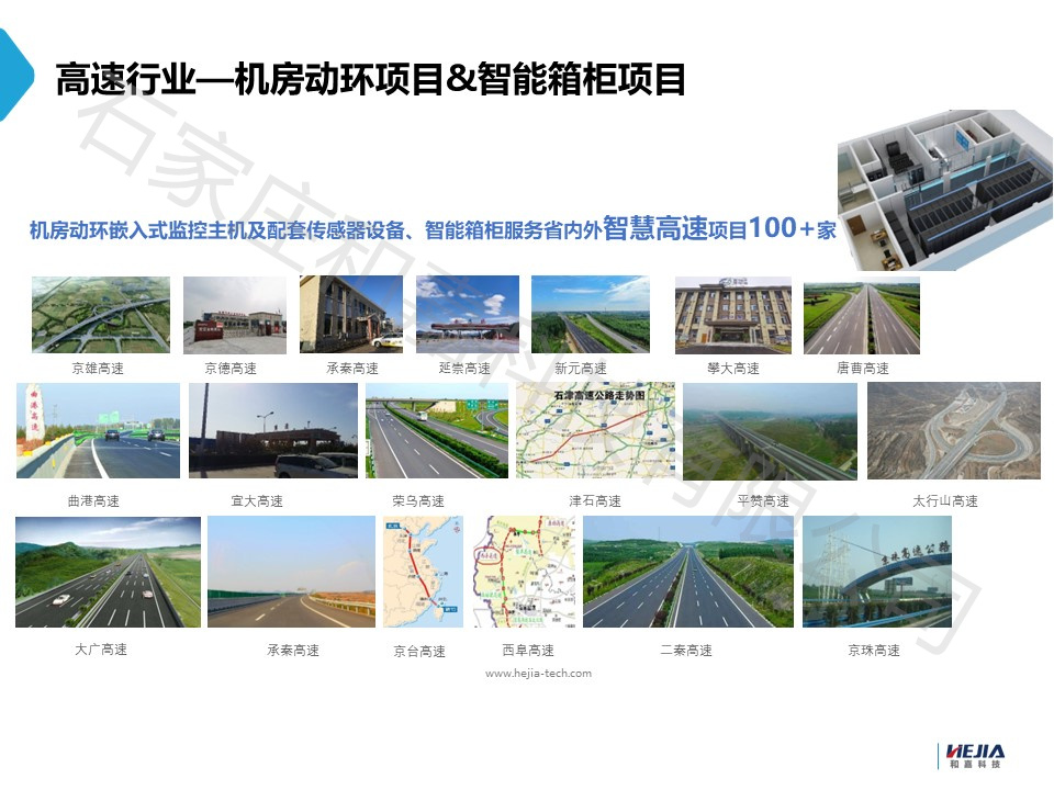 石家莊和嘉科技有限公司是一家專業從事機房環境及動力設備監控系統產品開發和應用的高新技術企業,公司成立于2008年,注冊資金2010萬元,公司于2013年通過“科技型中小企業”認定,2015年通過“高新技術企業”認定,2019年認定為“河北省專精特新中小企業”和“石家莊市創新型企業”,公司已通過ISO9001質量管理體系認證;CE認證;公司自主研發了PEMS機房環境及動力設備監控系統平臺軟件和嵌入式PEMS-1000、PEMS-2000、PEMS-3000、PEMS-4000、PEMS-6800系列監控主機及智能電控柜、智能通信防護箱、ETC門架一體化智能柜、智能收費亭中控系統等系列產品,同時還研發了溫濕度、漏水控制器、普通空調控制器等智能傳感器,并取得了PEMS機房環境及動力設備監控系統平臺軟件、嵌入式監控主機及其它相關產品的30多項軟件著作權登記證書和12項實用新型專利,PEMS機房環境及動力設備監控軟件產品已通過河北省軟件評測中心的軟件測試,監控主機、傳感器等硬件產品已通過河北省質量技術監督局的產品質量檢驗,PEMS機房監控系統同時還獲得了河北省科技廳頒發的《河北省科學技術成果》證書。
