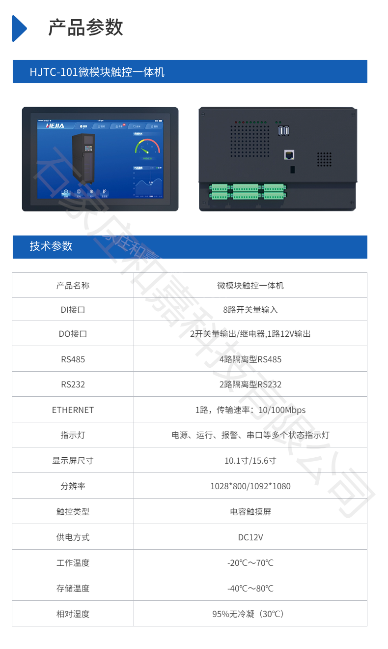 設(shè)備集成電容觸摸顯示屏,可查看、設(shè)置設(shè)備參數(shù)等信息;