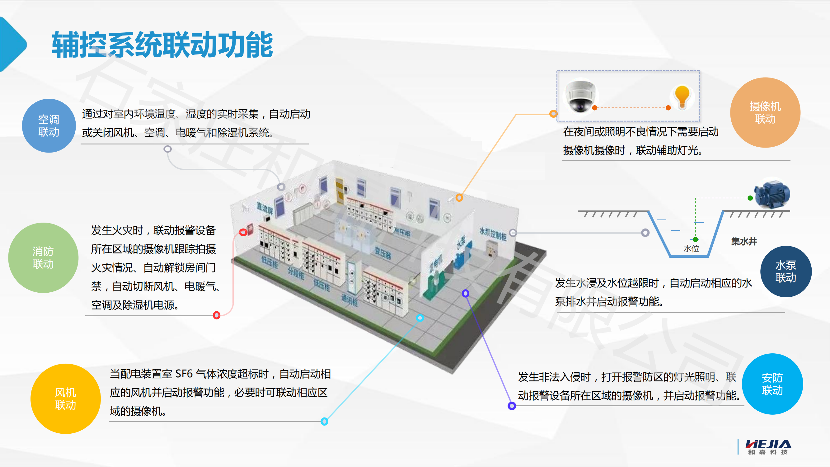 控制設備:包括燈光控制模塊、除濕機控制模塊、風扇控制模塊、泵控模塊、智能空調控制模塊等,用于對配電房內的照明、除濕、通風、排水等系統進行遠程控制和調節。
