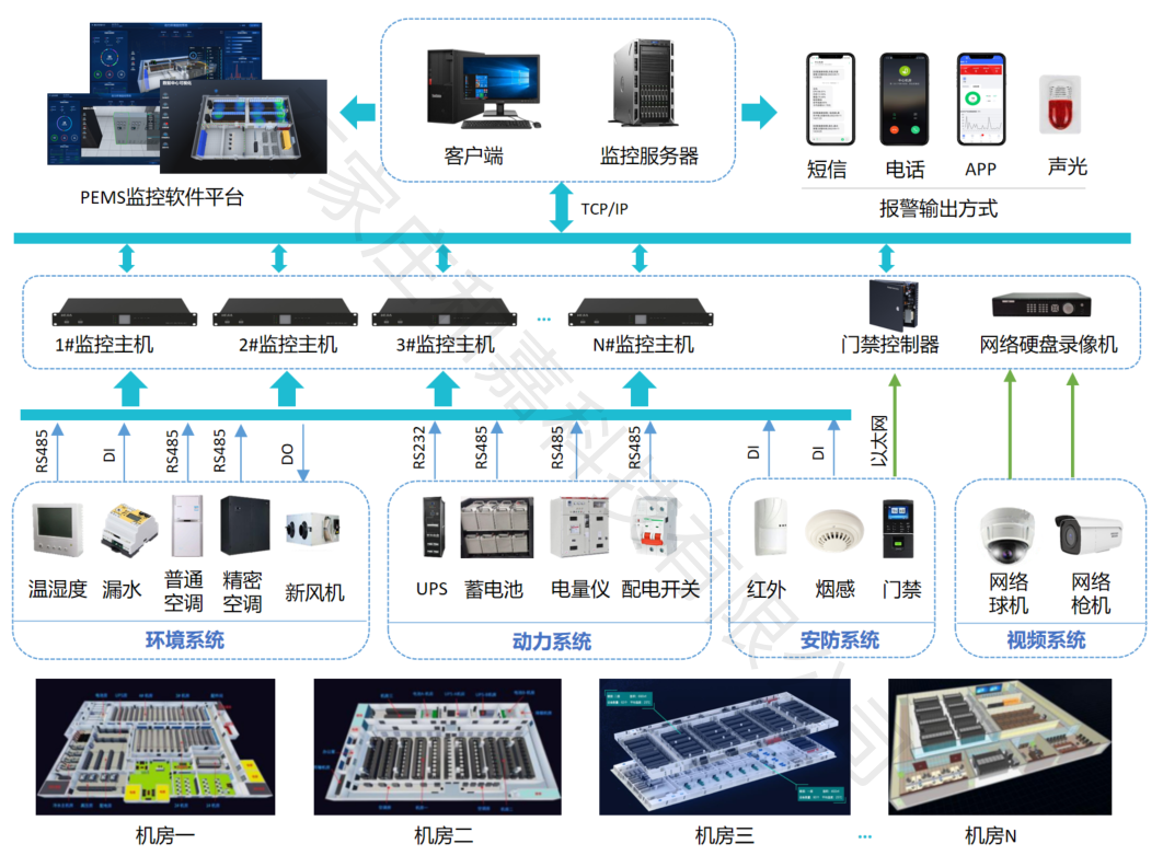 動環監測:溫濕度、箱門狀態、漏水監測等