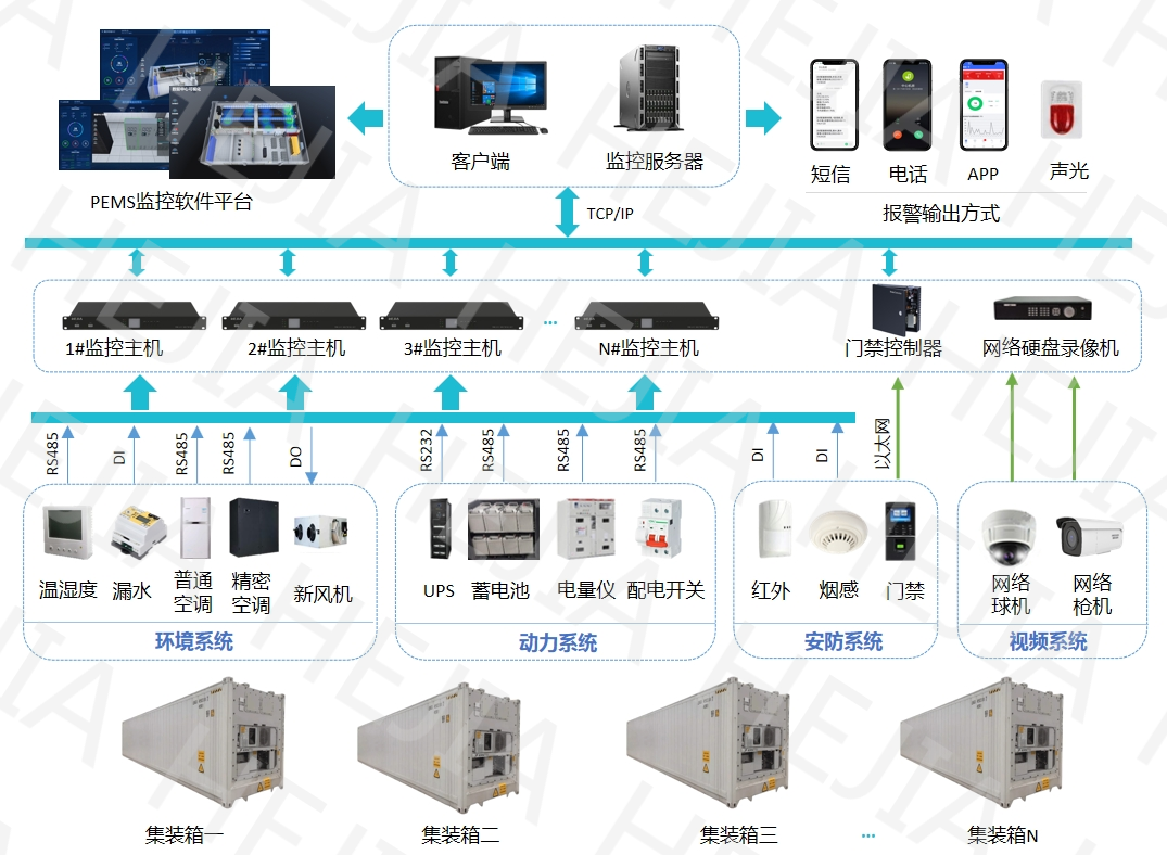 巴布亞新幾內(nèi)亞9套聯(lián)網(wǎng)集裝箱動(dòng)環(huán)監(jiān)控系統(tǒng)是通過(guò)傳感器收集集裝箱內(nèi)的各種數(shù)據(jù),如溫度、濕度、煙霧、漏水、電力、消防、發(fā)電機(jī)、視頻、流量計(jì)參數(shù)等;數(shù)據(jù)采集設(shè)備將傳感器收集到的數(shù)據(jù)進(jìn)行匯總和初步處理;監(jiān)控軟件則對(duì)處理后的數(shù)據(jù)進(jìn)行分析和展示,實(shí)現(xiàn)對(duì)集裝箱內(nèi)設(shè)備和環(huán)境的實(shí)時(shí)監(jiān)控。