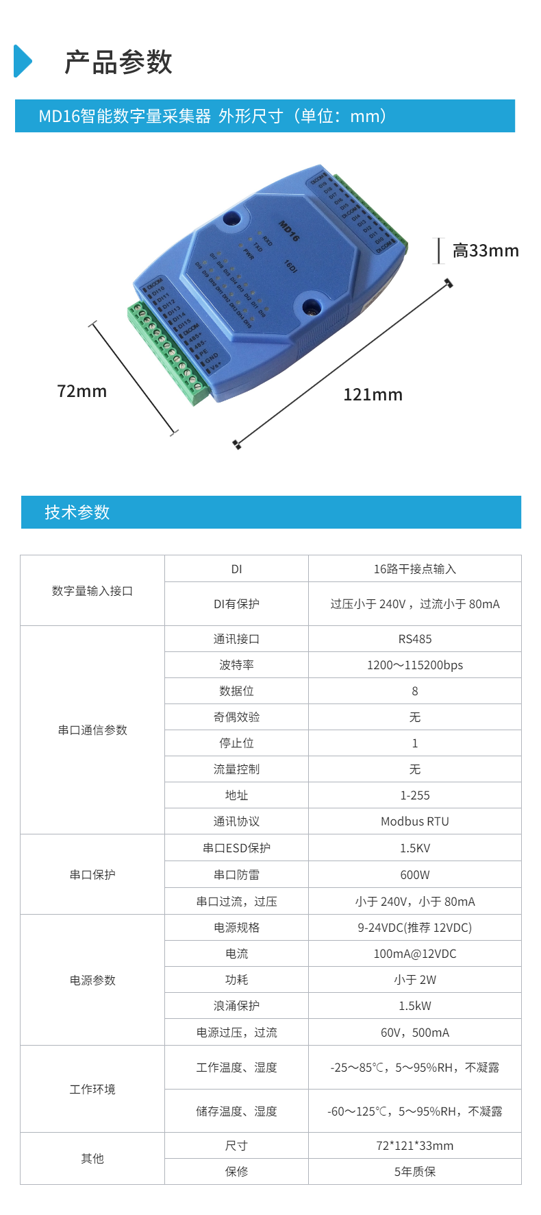 機房監控產品 - 開關量采集器 - MD16智能數字量采集器
